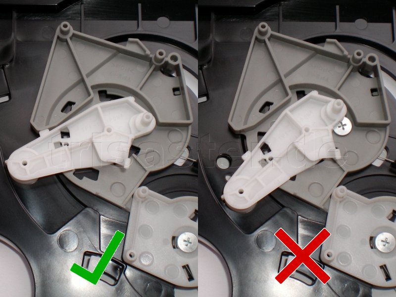 Ich denk mal nicht das ich zu doof bin. Ich hab das so gemacht wie vorgeschrieben. Der eine Schieber berüht die Zahnräder nicht und auch der eine weiße Hebel unterm Deckel bedeckt die Schraube, so wie auf dem einen Bild hier auf der Seite beschrieben.