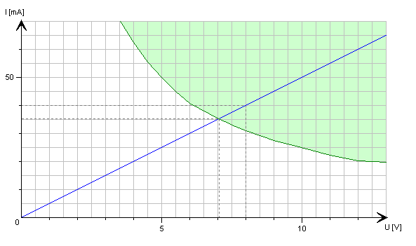 Bei einer angelegten Spannung von 8V beispielsweise kommt man in den hier grünen Bereich, das hält der Widerstand nicht aus.