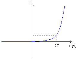 Mit steigender Spannung bleibt der Strom anfangs fast Null. Ab 0,6V ca. tut sich wirklich was und ab rund 0,7V fließt ein wirklich nennenswerter Strom. Danach steigt die Spannung kaum noch, aber der Strom.
