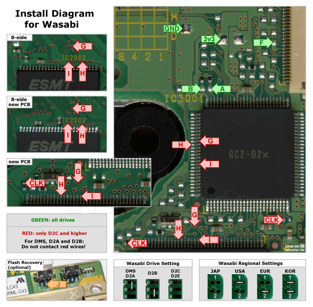 Der Wasabi ist kompatibel mit allen Laufwerken (GC2-DMS bis D2E). Es existieren derzeit 3 Versionen des Wasabi. Alle werden mit 9 Kabeln (D2C und höher) bzw mit 6 Kabeln (bis D2B) eingebaut.