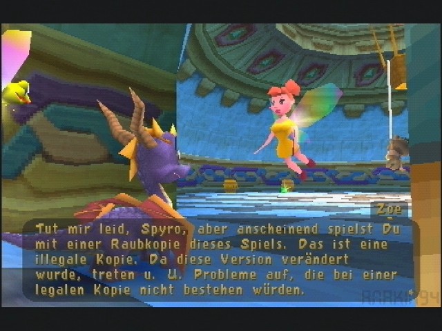 Insomniac Games hatte bei Spyro 3: Year of the Dragon einen mehrschichtigen Kopierschutz eingebaut. Das Spiel hat neben LibCrypt (PAL) und Anti-Mod (NTSC) auch noch Crack-Protection. Der Code prüft mit Quersummen im RAM, ob es modifiziert wird. Wenn das der Fall ist, wird der Pirate-Mode aktiviert. Das Spiel läuft erst einmal ohne Probleme. Aber es treten im Verlauf Fehler und andere Probleme auf, wie z.B. das man nicht alle Edelsteine finden kann, die Eier zurückgesetzt werden, das sich die Sprache ändert, das die Bosskämpfe schwieriger sind und vieles mehr. Sollte man dennoch weiterspielen und den End-Boss antreffen, läd das Spiel nach kurzer Zeit die Anfangswelt und der Spielstand wird auf 0% zurückgesetzt.